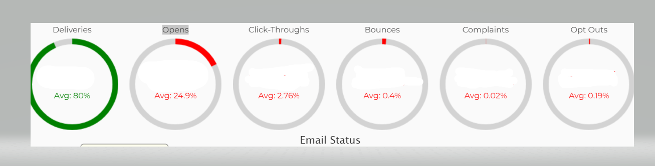 This information above shows you industry standard information for non-profit around the country and could vary for each organization. The point of this is to see how your emails are doing once you've sent them to better understand how to make them better, or keep them as is. It will show you the percentage of delivery, Open Rate, Clicks, Bounces, Complaints and Opt-Outs.